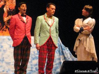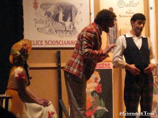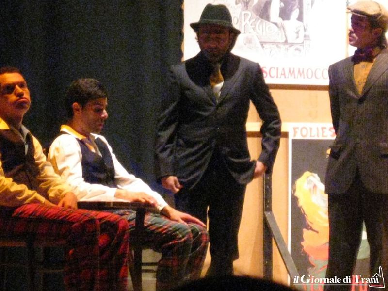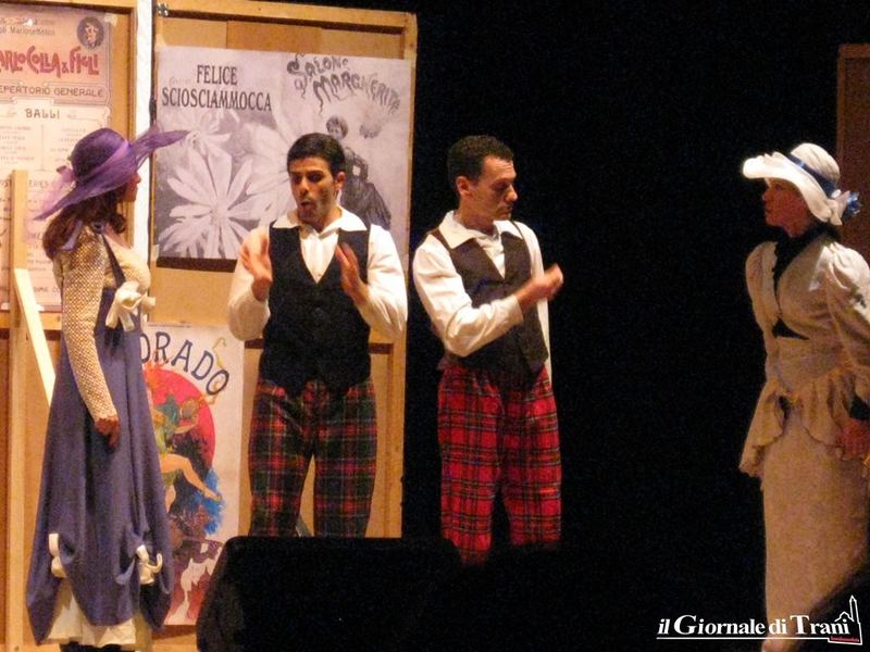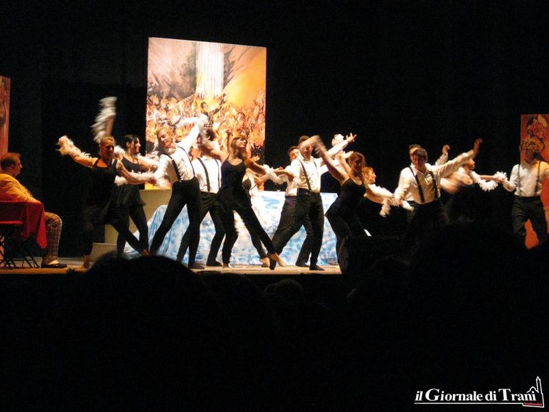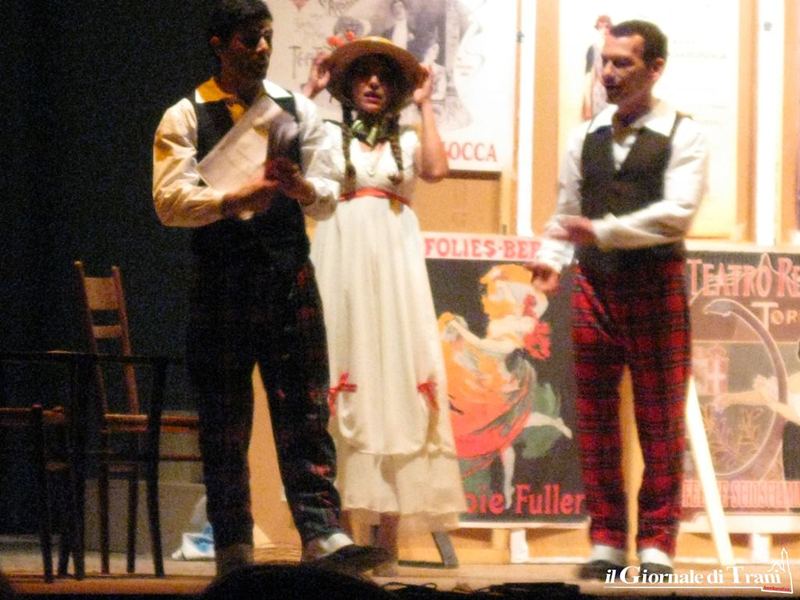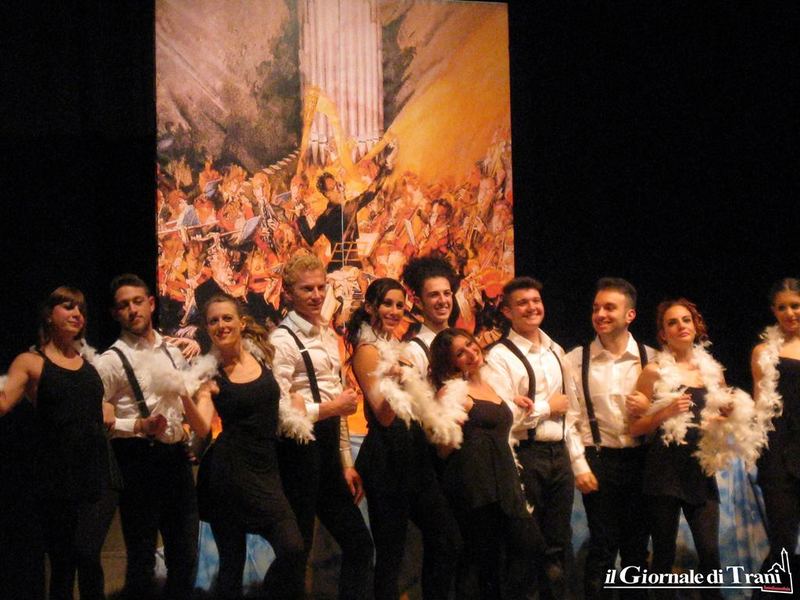 La commedia musicale interpretata da quindici attori (Enzo Matichecchia, Lella Mastrapasqua, Andrea d’Amore, Daniela Rubini, Giuseppe Sasso, Barbara Palumbo, Elida Musci, Mally Papagni, Michele Schiavone, Enzo Ciani, Gigi Di Leo, Francesco Di Tondo, Noemi Mazzola, Marika Lopopolo, Vincenzo Raguseo) con le coreografie di quattordici ballerini dello Studio Danza di Trani ha fatto ridere ed emozionare il pubblico. Protagonisti, una coppia di teatranti di prosa classica alle prese con la crisi del settore di inizio Novecento, quando ormai a farla da padrona sui palchi è il “caffè concerto”, qualcosa di più spensierato per il pubblico, con canti e balli.