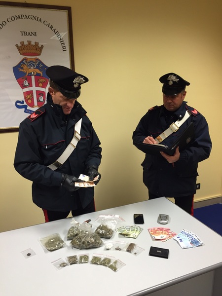 Il giovane è stato tradotto presso la casa circondariale di Trani con l’accusa di detenzione ai fini dello spaccio di sostanze stupefacenti.