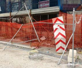 Infatti la recinzione di messa in sicurezza è ancora presente e, per la verità, lo stato dei luoghi appare di estremo degrado, anche in considerazione del fatto che una parte delle barriere sono stata manomesse, probabilmente, dall'urto di un mezzo pesante e, all'interno, si sono ormai accumulati rifiuti e detriti di ogni genere.