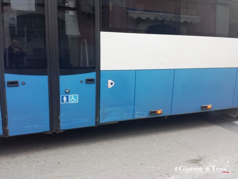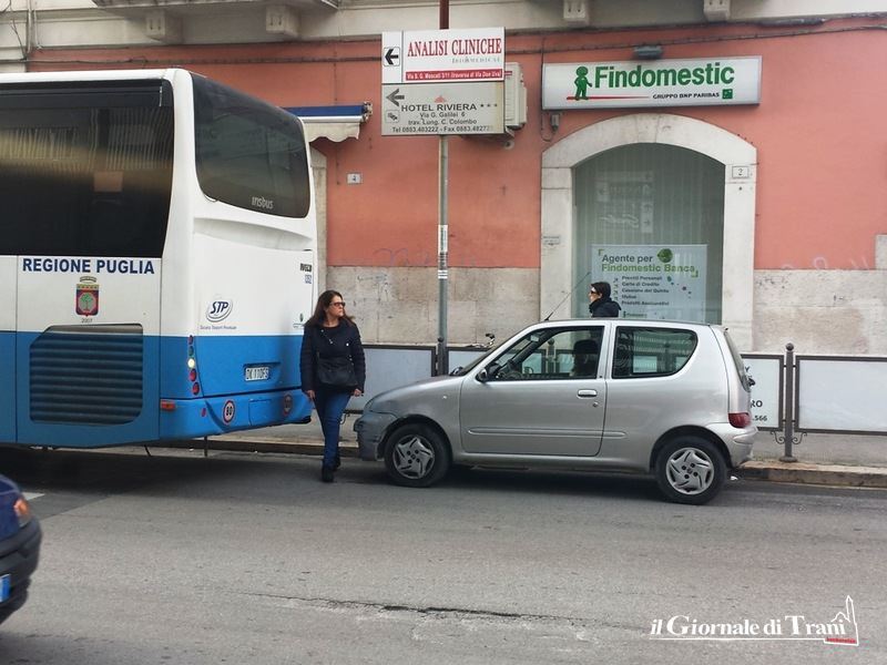 La vettura, nel frattempo si era già incanalizzata sulla corsia parallela, dedicata a chi svolta effettivamente a destra: i mezzi si sono toccati ed il pullman ha quasi incastrato il piccolo veicolo fra sé e le barriere parapedonali.