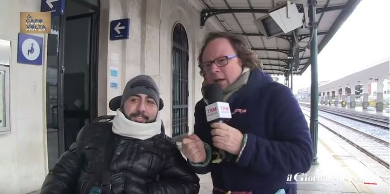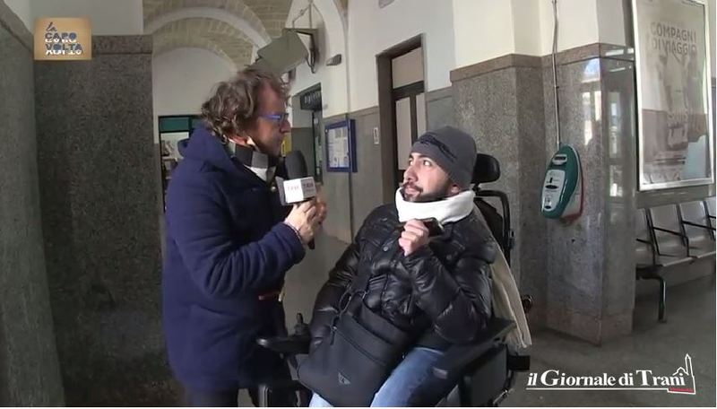 Amareggiato Donato, che ha rilevato anche la presenza di numerose barriere architettoniche all’interno della stazione: «Se io volessi prendere il treno per andare a Roma, dovrei prendere un regionale da Trani a Barletta, e non è possibile perché la stazione di Trani non è provvista di assistenza per le persone in carrozzina, ovvero una persona con carrello elevatore che mi consenta di salire e scendere dal treno. Non è possibile raggiungere il secondo e terzo binario perché non ci sono né uno scivolo né servoscala».