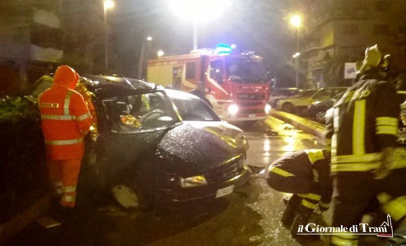 Incidente stradale questa mattina, intorno alle 5.30 all'incrocio tra via Bonomo e via De Gasperi: sono venute in collisione un'auto, che procedeva verso piazza Fani, ed una che si immetteva da via Bonomo. L'impatto è stato così violento da rendere necessario l'intervento dei vigili del fuoco, che hanno operato per 45 minuti per liberare il ferito dell'auto in fase di svolta, imprigionato tra le lamiere.