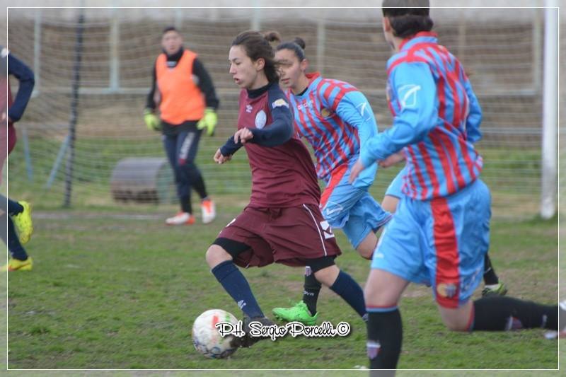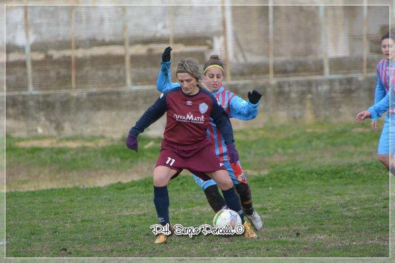 Ma è nel secondo tempo che l’Apulia mostra i denti. Sgaramella si procura un rigore, ma Delvecchio tira troppo forte e la palla colpisce nettamente la traversa. Al ventunesimo minuto, Delvecchio su punizione lancia al centro, il portiere non la trattiene e lesta come un falco Pina Mariano la mette dentro. Risultato sull’1 a 0. L’Apulia merita assolutamente la vittoria nel secondo tempo, avendo dominato la metà campo, contro un Catania fermo e senza idee. L’autrice del gol esce, sostituita dalla nuova arrivata, al suo esordio con la casacca amaranto, Pamela Riccio. Cagiano cade, ma niente di serio: verrà sostituita poco dopo da Laurora. Al trentottesimo minuto, Riccio mette a segno. Ultimo cambio per l’Apulia, che ormai ha la vittoria in tasca: Mergola al posto di Sgaramella.
