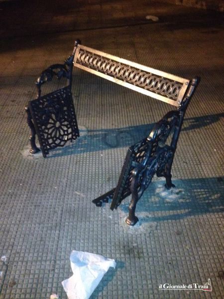 Una banda di vandali delle panchine imperversa in città, soprattutto in orari notturni. Ne hanno fatte le spese alcuni elementi di arredo urbano prima in piazza Nassiriya (foto notturna), poi in piazza D'Agostino.