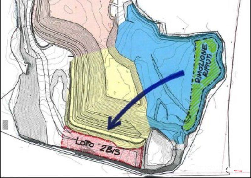 La depressione creatasi nel lotto 3 sarà anch’essa coperta in modo provvisorio, ripristinando il telo d copertura precedentemente steso, con creazione di un bacino impermeabilizzato a servizio dei lotti di discarica».