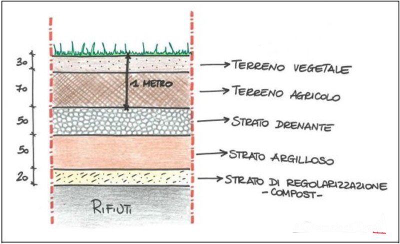 La chiusura definitiva della discarica dovrà essere in grado di: «Minimizzare l’infiltrazione delle acque meteoriche nel corpo della discarica; consentire il corretto esercizio dei sistemi di raccolta del percolato; ostacolare la fuoriuscita incontrollata di biogas; adattarsi ai cedimenti nel tempo dell’ammasso dei rifiuti; favorire la piantumazione e sistemazione a verde dell’area».