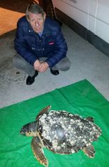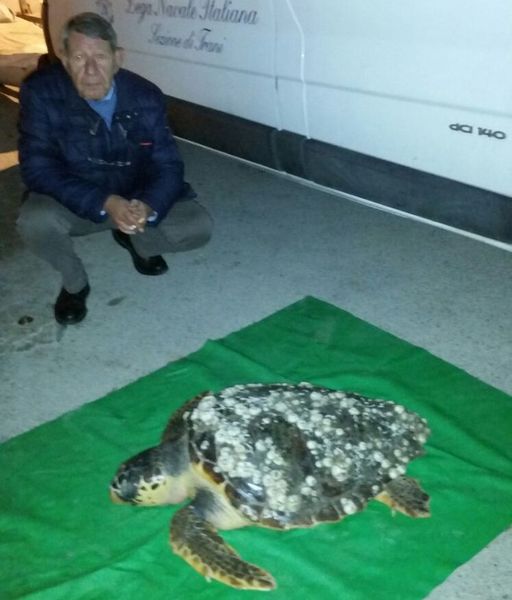 A prendere in consegna l'animale, in particolare, il vice presidente del sodalizio, Mimmo Diomede, il primo a prestare soccorso alla tartaruga ritrovata dal momento in cui è stata adagiata in banchina. Sul posto anche il comandante del porto, Stefano Sarpi. L'animale, per la cronaca, misura 75 centimetri.