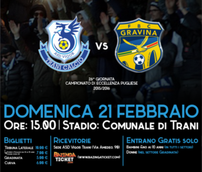 Ci spera davvero il Trani contro il Gravina. Oggi, per l'occasione, si torna al Comunale con la scommessa di giocare su un campo ancora in stato di profonda convalescenza. In ogni caso, le cure urgenti sono iniziate dallo scorso 10 febbraio e, fino ad oggi, si dovrebbe giocare su un manto erboso appena sufficiente.