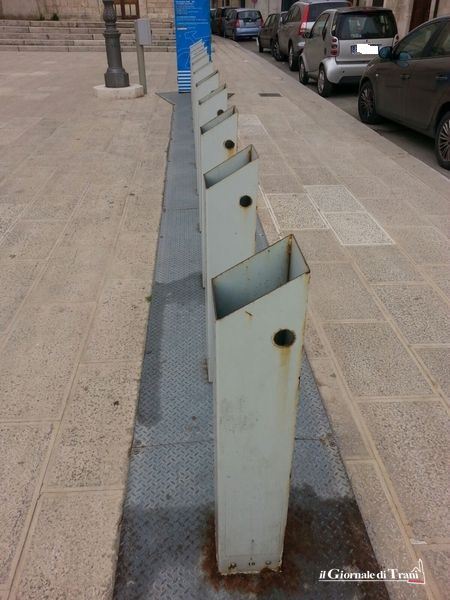In particolare, le colonnine di una delle quattro postazioni da cui si sarebbero potute prelevare e, successivamente, rilasciare le biciclette a noleggio, vale a dire quella di via fra’ Diego Alvarez, dopo essere state oggetto di asportazione di cavi di rame adesso sono, a tutti gli effetti, dei cestini portarifiuti.