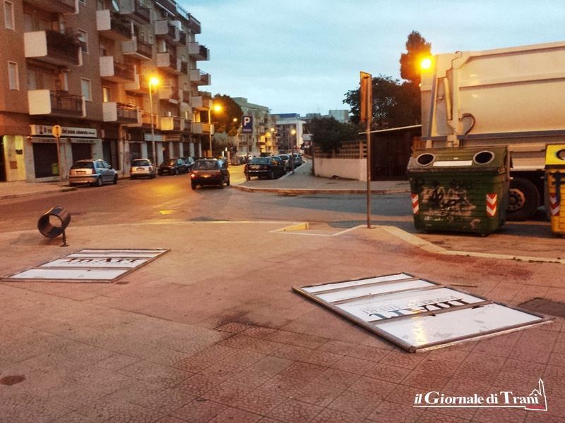 In piazza Albanese, in particolare, uno è finito letteralmente per strada e sarebbe potuto piombare su veicoli in transito. Da segnalare, nella stessa piazza, anche altri oggetti vaganti in ferro, potenzialmente molto pericolosi per la pubblica incolumità.