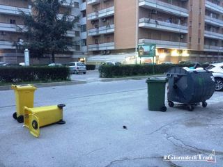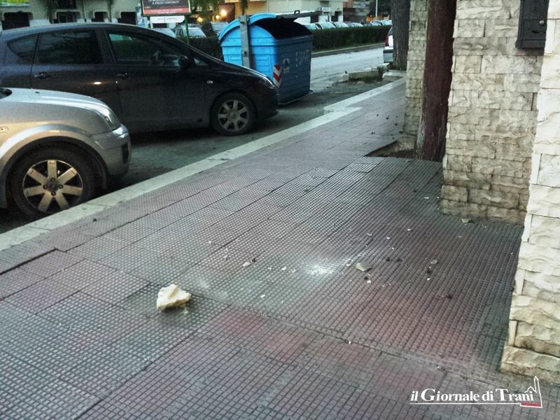 Calcinacci sono caduti in corso De Gasperi, nei pressi dell’intersezione con viale San Pio, ed ovunque sì segnalano bidoncini volati per strada e rifiuti svolazzanti da tutte le parti frammisti ad aghi di pino.