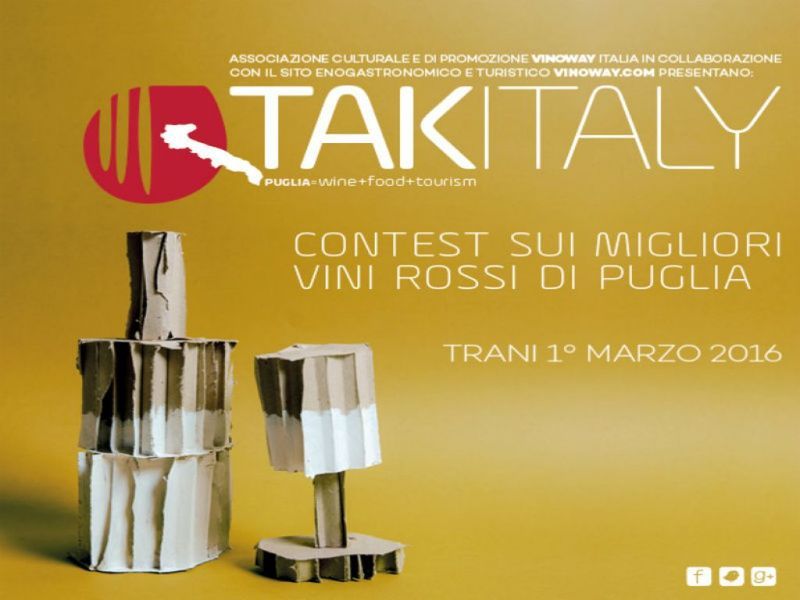 I vini rossi di mezza Puglia a Trani, per un simposio che ne rappresentasse sintesi e valorizzazione allo stesso tempo. La manifestazione si chiama “Takitaly” e ha definito un insieme di eventi organizzati dall’associazione culturale Vinoway Italia per promuovere l’unicità e versatilità delle risorse territoriali tipiche di ciascuna regione italiana. E nella nostra regione, dopo i primi due incontri su "I bianchi di Puglia" e "Gli spumanti di Puglia", a Trani si è tenuto il terzo, dedicato a "I migliori vini rossi di Puglia”, concepito per dare spazio alle eccellenze vinicole regionali, ormai rinomate anche a livello internazionale.