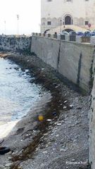 Ci riferiamo al tratto di litorale compreso fra castello e cattedrale, sul quale il mare trasporta rifiuti di ogni tipo, soprattutto in plastica, e persino carcasse di animali, tronchi e pneumatici. Il resto lo fanno cittadini incivili, che dall’altro buttano giù ogni cosa, e vandali che, fra le altre cose, nel recente passato hanno scaraventato di sotto persino le transenne della Polizia locale.