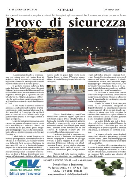Pertanto il Comune di Trani vuole procedere, in via sperimentale, all'acquisto di dispositivi luminosi che rendano più sicuri alcuni passaggi pedonali ed intersezioni stradali, specialmente in alcune zone della città dove la conformazione stradale induce gli utenti la strada a non assumere una velocità moderata, ponendo in serio rischio l'incolumità dei pedoni».