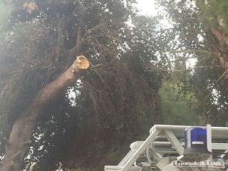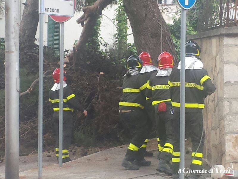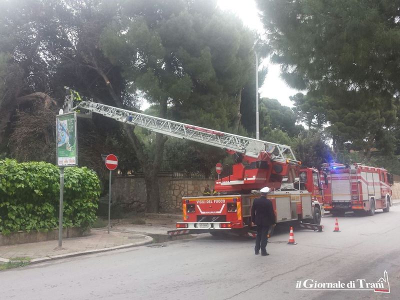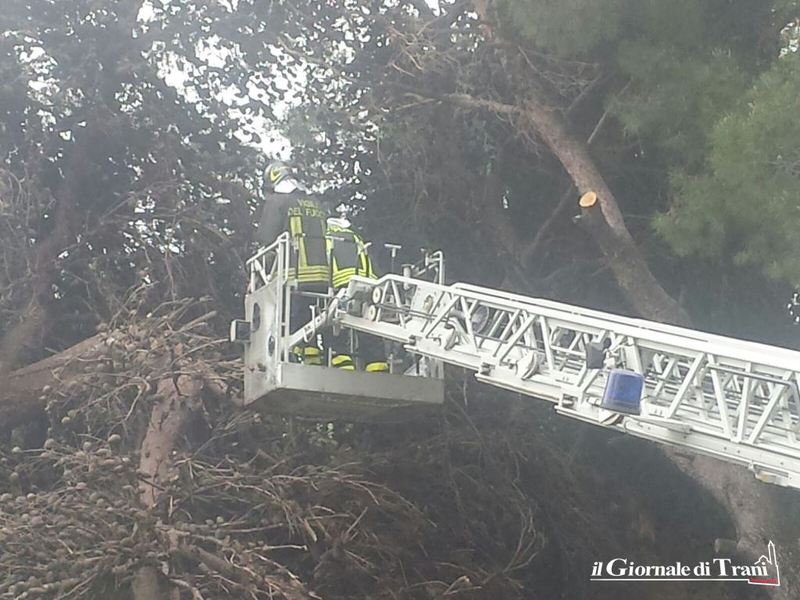 Domani sarà effettuato un ulteriore intervento di sfoltimento e messa in sicurezza. Non si esclude il taglio dell'albero in quanto secondo i vigili del fuoco la situazione non è sicura. L'intervento di domani dovrà essere a cura del Comune di Trani e pertanto adesso la questione passa nelle mani del Dirigente dell'Area lavori pubblici e dell'ufficio giardini.