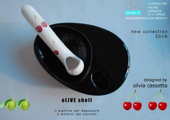 Su Lira fanno bella mostra di sé altre creazioni a sua firma come la Pipoliva e Cerasì, due oggetti simili ad una pipa per degustare con eleganza e senza sporcarsi le mani rispettivamente le olive da aperitivo oppure le ciliegie, consentendo di disfarsi del nocciolo attraverso un leggero soffio di classe, deponendolo nel manico cavo degli oggetti stessi. L’intento è proporre un nuovo modo, quasi un rito della degustazione, che rende onore al frutto prezioso dell’ulivo o a quello goloso del ciliegio. Oggetti in ceramica dal design seducente, degni di banchetti metropolitani dove il design è a servizio di eleganza e funzionalità. Pipolva o Cerasì si possono appendere al collo come se fossero gioielli, comodi da portare se si mangia durante banchetti in piedi. Completa la collezione oLive shell, un piattino da degustazione, anch’esso in ceramica tra gli ultimi oggetti concepiti dalla professionista tranese. Simile ad una conchiglia nella forma, permette di contenere olive e ciliegie e di deporre i noccioli, celandoli in una piccola cavità al suo interno.