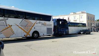 Ieri, infatti, come già sta accadendo da diversi giorni, Trani è stata assaltata dai bus turistici, che si sono riversati in prossimità della villa comunale: cinque sono stati parcheggiati nei pressi della sede dell’Amet, sul lungomare Chiarelli, quattro in piazza Plebiscito e tre in via Elena Comneno.