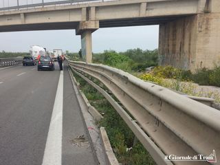 Il conducente di un'utilitaria, diretta verso Barletta, ha perso il controllo della vettura sbattendo sul guard rail e, poco dopo, terminando la sua marcia nuovamente addosso alle paratie laterali.