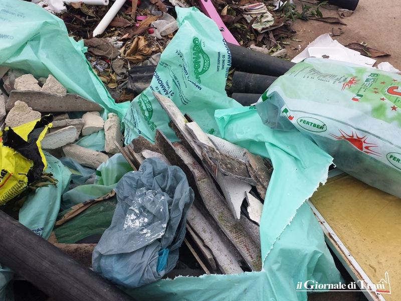 Soltanto sabato scorso gli operatori di Amiu avevano rimosso da quel luogo almeno 250 chilogrammi di rifiuti, tra solidi urbani ed ingombranti. Ieri, in via Duchessa d’Andria, l'immagine si è ripresentata allo stesso modo con l'aggravante, però, che tra i rifiuti depositati vi erano anche numerose buste contenenti parti di manufatti realizzati in eternit. Ciascuno di questi sacchi celesti era colmo di frammenti di vecchie grondaie e cisterne, dunque materiale molto pericoloso perché l'eternit, quando non si presenti integro, rilascia nell’aria particelle di amianto altamente tossiche.
