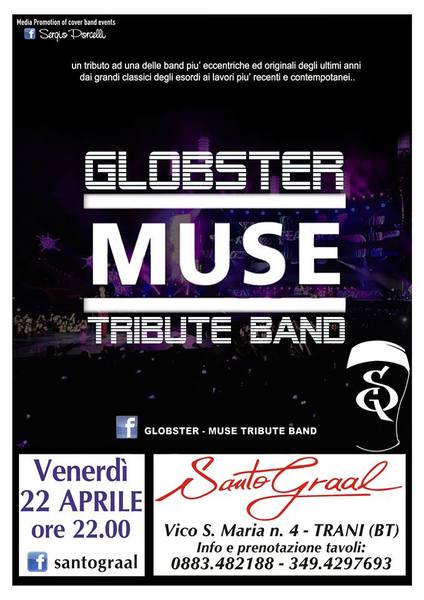 Stasera alle 22 al Santo graal di Trani in vico santa Maria 4 «Globster», Muse tribute band.