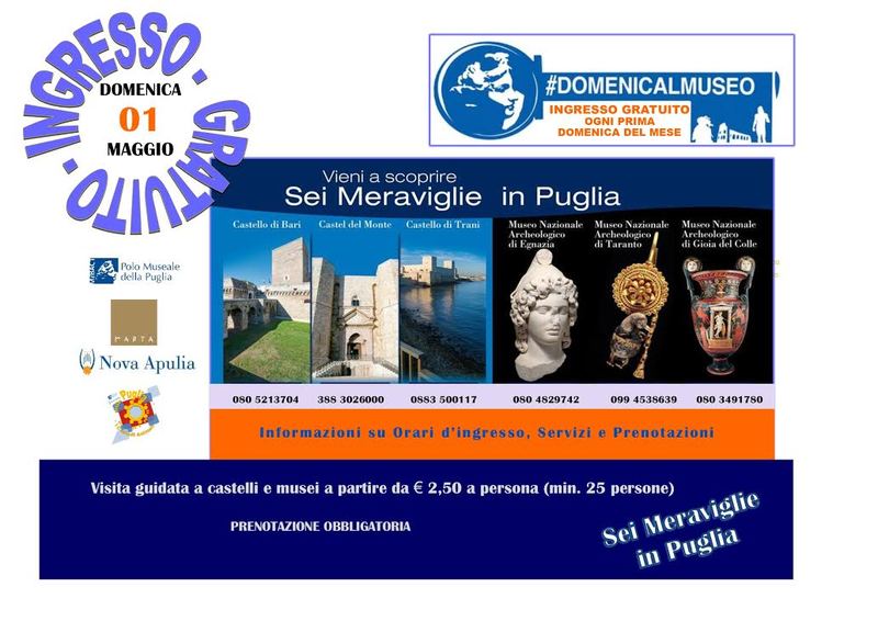 Oggi, domenica 1mo maggio 2016, in occasione dell'iniziativa del MIBACT Domenica al Museo, con ingresso gratuito in tutti i Luoghi della Cultura statali, nel castello svevo di Trani vi attendono le guide turistiche di Nova Apulia - abilitate e accreditate - per accompagnarvi nella scoperta della storia e delle bellezze di questo meraviglioso luogo.