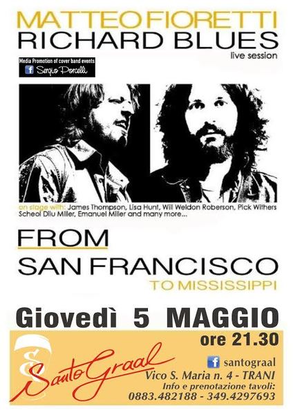 Oggi alle 21.30, al Santo graal di Trani, in vico Santa Maria 4 Richard Blues (voce, chitarra) & Matteo Fioretti (chitarra) - From San Francisco To Mississippi.