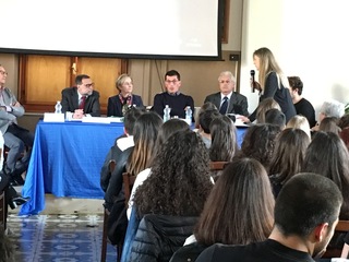 Così è iniziato l’incontro tenutosi presso il Liceo “F. De Sanctis” di Trani, che ha aperto, per l’occasione, le porte dell’Aula Magna ad una lezione sulla “legalità” con ospiti d’eccezione: il dott. Pasquale Drago, Procuratore Aggiunto della Repubblica presso il Tribunale di Bari, Capo della Direzione Distrettuale Antimafia, che si occupa delle indagini per reati di criminalità organizzata e di terrorismo nei territori delle Province di Bari, Bat e Foggia, e la dott.ssa Giulia Pavese, Presidente di Sezione Penale e di Corte d’Assise, Magistrato che presiede il Collegio delle misure di prevenzione.
