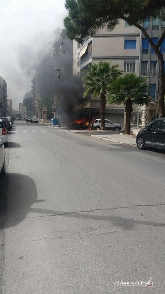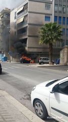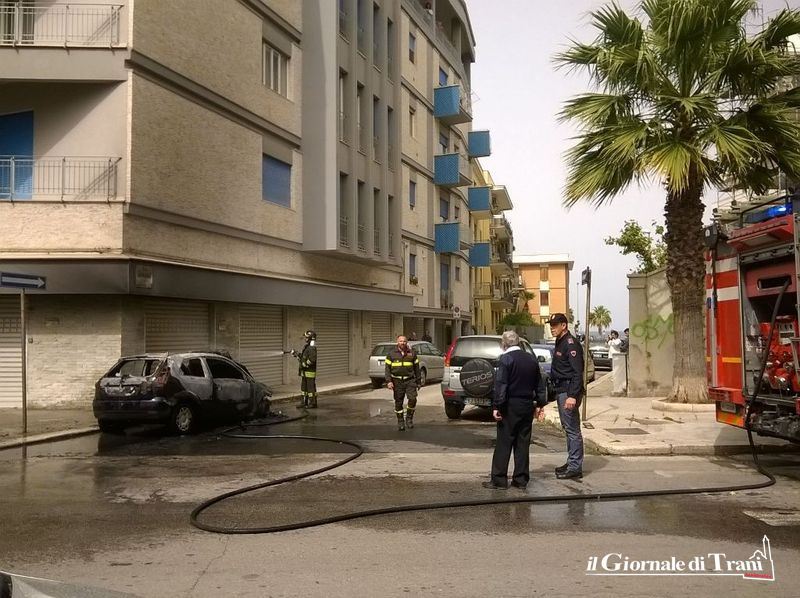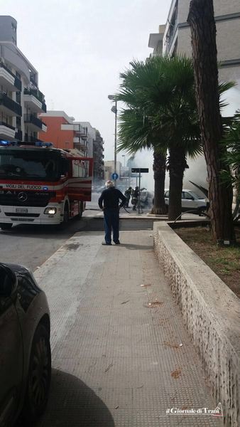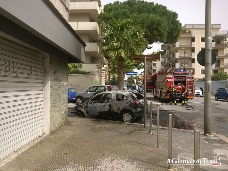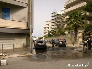 Vigili del fuoco in azione questo pomeriggio in via Rovigno, nei pressi dell'intersezione con via Malcangi, a causa dell'incendio di una vettura parcheggiata in adiacenza con palazzo Marinella.
