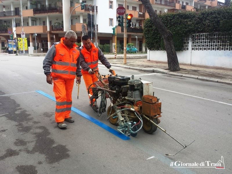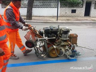 Sono iniziati stamani i lavori per il ripasso delle strisce blu, per la delimitazione delle aree di parcheggio a pagamento, a cura della ditta Leonardo Napoletano, aggiudicataria della procedura ad evidenza pubblica emanata nei mesi scorsi da Amet, gestore del servizio.