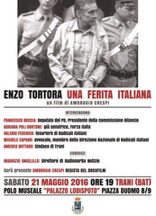 Oggi, sabato 21 maggio, alle 19, presso il Polo museale di Trani, proiezione del docufilm di Ambrogio Crespi «Enzo Tortora, una ferita italiana». Sarà presente in sala il regista.