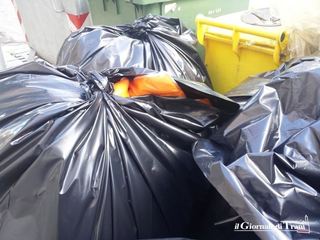 Un lembo di giubbotto salvagente, affiorante da un bustone di colore nero, è la traccia visibile della già avvenuta accoglienza dei quaranta profughi, fra i quasi settecento sbarcati ieri pomeriggio a Brindisi, trasportati a Trani presso le Suore vincenziane di via Mario Pagano.