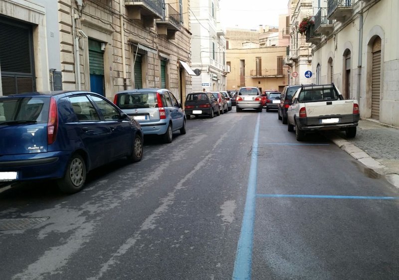 Infatti, su un lato della carreggiata ci sono le strisce blu, sull'altro il parcheggio libero, ma, parcheggiando sulla sede stradale, non ci sarebbe spazio per il transito automobilistico. Così, sul lato destro, in direzione di via Ciardi, grazie alla facile valicabilità, le vetture della zona a pagamento parcheggiano con due ruote sul marciapiede, favorendo in questo modo una più agevole circolazione delle auto.