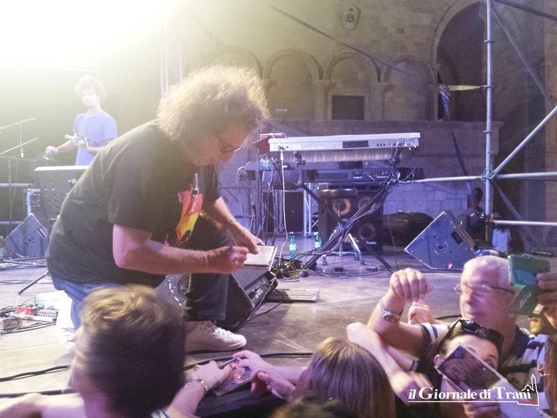 È l’assist per l’apoteosi della serata, caratterizzata dal super intro di Eppur mi son scordato di te, accompagnata per tutta la durata dai duemila di Trani, anche grazie alla versione offerta, perfettamente sovrapponibile all’originale con l’eccezione di un altro grande assolo finale di Radius, una doverosa licenza poetica per mettere l’ombrellino nel long drink di una nuova, gran serata da ricordare.