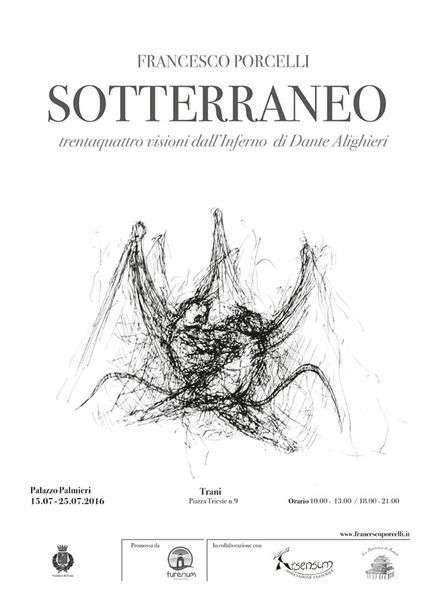 "Sotterraneo. Trentaquattro visioni dall'Inferno di Dante Alighieri" è il titolo della mostra di Francesco Porcelli in programma fino a questa sera, lunedì 25 luglio (dalle 10 alle 13 e dalle 18 alle 21), presso Palazzo Palmieri. In esposizione disegni a china su carta, per indagare il mondo dantesco fra citazioni artistiche e riferimenti letterari. Ingresso gratuito. Evento promosso da Pro loco Turenum, in collaborazione con associazione Arsensum, La biblioteca di Babele e Youcanprint.