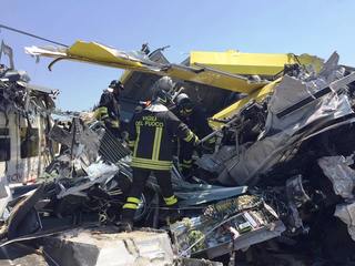 Due convogli della Ferrotramviaria, in marcia lungo la linea Bari Nord nel tratto compreso tra Corato ed Andria, si sono scontrati ieri mattina per cause oggetto d'indagine. Il bilancio provvisorio è di 27 morti e 50 feriti. Fra le persone soccorse, una ragazza di Trani: se l'è cavata con lievi ferite e tanto spavento.