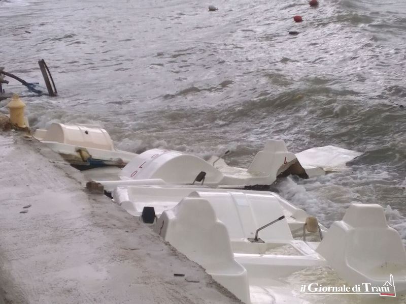 Ingenti danni, quantificabili almeno in 8 mila euro, quelli causati stanotte dal maltempo a Trani presso il “nolo Baldassarre”, sulla strada che conduce dal Lungomare Cristoforo Colombo al Monastero di Colonna. È stato infatti distrutto un pedalò, mentre altri tre sono stati rotti da un forte vento.