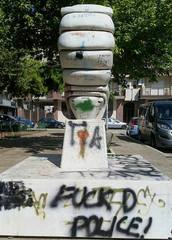 Purtroppo, la statua è stata più volte macchiata da pennarelli e spray dei grafomani, fu ripulita in una sola occasione e adesso si ripresenta in uno stato indecoroso, con l'aggravante di una scritta oltraggiosa verso tutte le forze dell'ordine e, principalmente, verso colui al quale il monumento e la piazza sono dedicate.