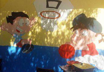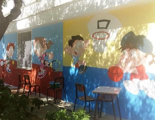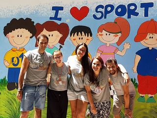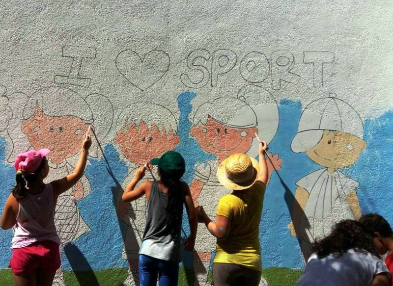 I muri della nostra palestra sono stati “animati” da piccoli atleti che giocano a calcio a tennis, a basket, da piccole ginnaste che fanno volteggiare il loro nastro, da corridori ai nastri di partenza, da judoka che si affrontano in una gara, da un enorme murale che recita: "I love sport".