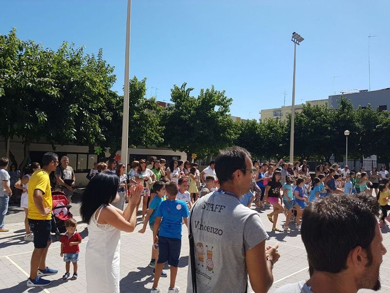 La manifestazione finale si è svolta nel giardino della scuola, trasformato in una palestra “a cielo aperto” grazie ai bellissimi murali intitolati “Giocare per Conoscere”, realizzati dagli alunni del progetto “Aperti per ferie".