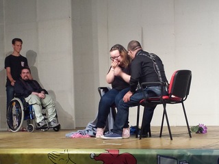 Una messa in scena interamente dedicata all’amore, grazie alla presenza sulle tavole del Giullare di sei attori provenienti da due associazioni di Latina. Altri tre, che non hanno potuto raggiungere Trani, hanno integrato lo spettacolo con recitazioni rilasciate in filmati.