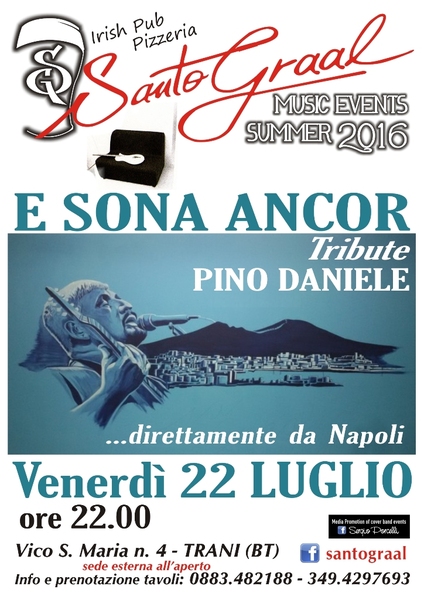 Direttamente da Napoli nello spazio esterno all'aperto del Santo Graal di Trani per la rassegna MUSIC EVENTS SUMMER 2016 ACCOLTI DAL FASCINO DEL BORGO ANTICO IN UNA ATMOSFERA UNICA