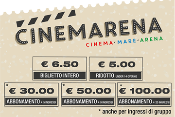 Oggi, domenica 24 luglio, nel boschetto della villa comunale, per «Cinemarena», la rassegna cinematografica voluta dall'amministrazione comunale e realizzata dal Consorzio sviluppo e territorio, si proietta Quo vado, di e con Checco Zalone. Gli spettacoli (inizio ore 21) saranno a pagamento, con i seguenti prezzi e promozioni: biglietto intero, 6,50 euro; ridotto, 5 euro; abbonamento per 5 spettacoli, 30 euro; abbonamento per 9 spettacoli, 50 euro; abbonamento per 20 spettacoli, 100 euro; diversamente abili, ingresso libero. Info, 392.98.95.099.