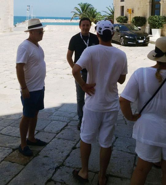 Intorno alle 13.30 ha avuto luogo la visita guidata nel centro storico, condotta da Gabriele Pace, guida turistica di Trani interpellata da un tour operator di Brindisi, che intreccia rapporti privilegiati proprio con questa facoltosa fetta di turismo proveniente dall'Est.