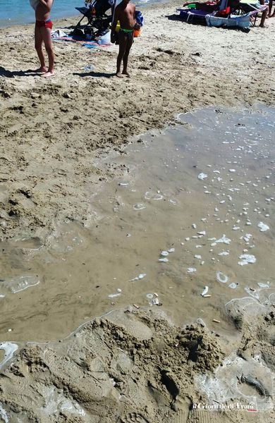 Poco edificante lo spettacolo: acqua schiumosa e di pessimo odore che scorreva tra i bagnanti, soprattutto bambini, e terminava in mare.