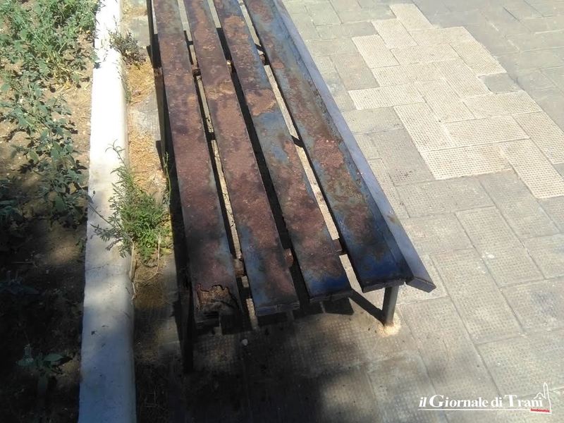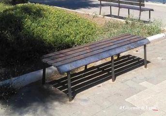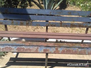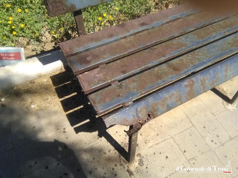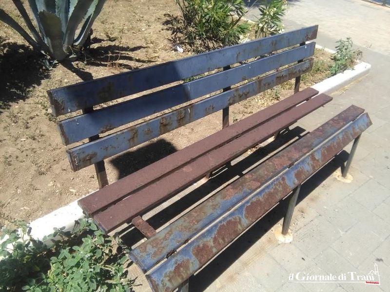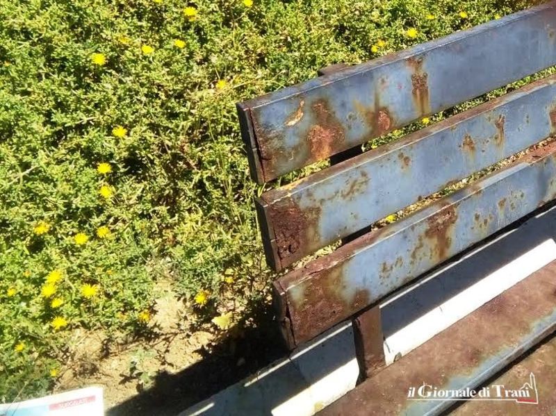 Alcune completamente divelte, tutte ossidate per via della ruggine. Così si presentano le panchine sul lungo marciapiede che costeggia il lungomare Cristoforo Colombo, proprio vicino alla pista ciclabile.
