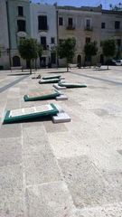 Tuttavia, la piazza è rimasta nello stato di partenza, con la differenza che le tavole, adesso, neanche ci sono più. Le stesse, già seriamente deteriorate durante i tre anni di permanenza in piazza, a causa di piccoli e ripetuti atti vandalici, nonché danneggiamenti dovuti alle pallonate delle partite a calcio tra ragazzini, una volta rimosse sono state trasferite al plesso centrale del secondo circolo didattico Petronelli, nella cui sede si sarebbero dovute restaurare e valorizzare a beneficio, soprattutto, dei bambini. In realtà, nulla di tutto questo è accaduto: le tavole hanno semplicemente cambiato posto trovando almeno una copertura, ma sono sempre compromesse e sono finite, soprattutto, nell'oblio.