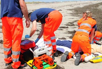 I primi due riuscivano a riguadagnare la riva ed avvisare un altro bagnante, marito della donna di cui sopra, del fatto che l'amico era in grave difficoltà: l’uomo provava a sua volta a tuffarsi per trarre a riva il ragazzo, riuscendovi solo in parte, poi completava un soccorritore dell’equipaggio. Il ragazzo veniva stabilizzato sul posto e condotto, in codice rosso, al pronto soccorso di Trani, da cui veniva condotto in sala di rianimazione, dove si trova tuttora.