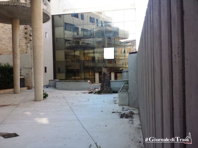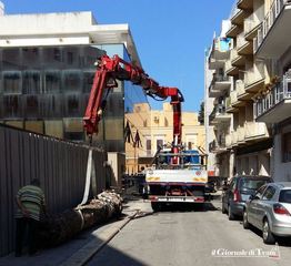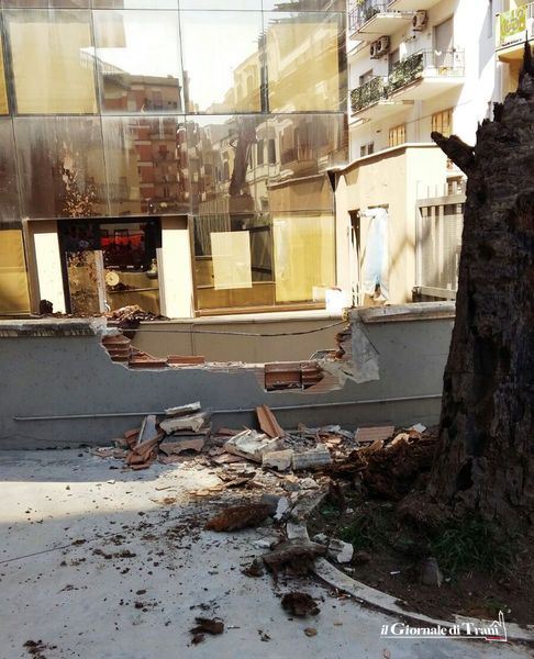 La palma che adornava il palazzo di via Montegrappa, inizialmente di proprietà dell'impresa Dicorato, e poi transitato al'Amet attraverso la curatela fallimentare, è caduta nel primo pomeriggio di ieri all'interno della stessa area compresa tra l'edificio, oggi occupato per due livelli dalla Sezione Unep del Tribunale di Trani, e l'immobile adiacente, meglio conosciuto come il "palazzo di vetro".
