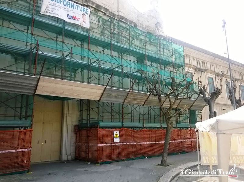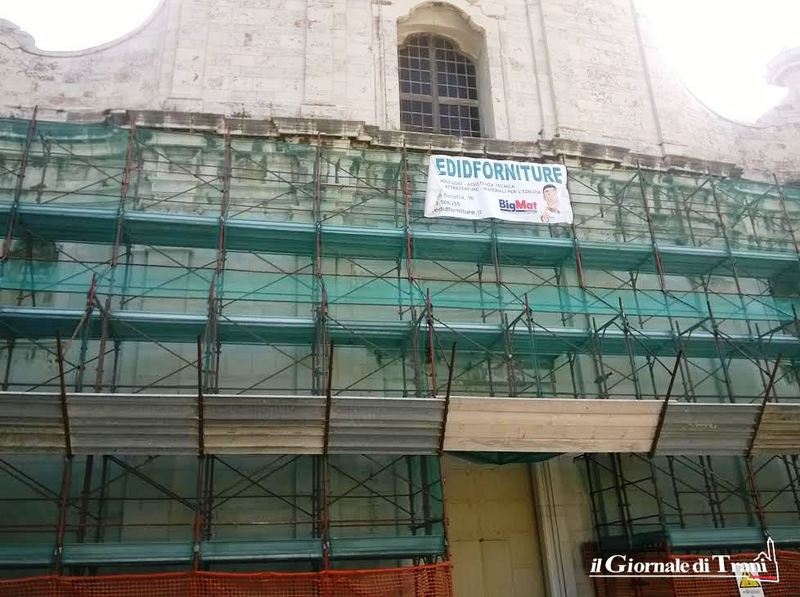 L’impalcatura sulla facciata della chiesa di san Domenico si trova lì almeno da più di un anno. Infatti, già nel febbraio del 2015 alcuni rappresentanti del comune di Trani, della prefettura, della soprintendenza e della curia, eseguirono un sopralluogo che mise in luce la necessità di condurre ulteriori e più accurate indagini sulle strutture murarie della facciata, in particolare per permettere un intervento di messa in sicurezza.