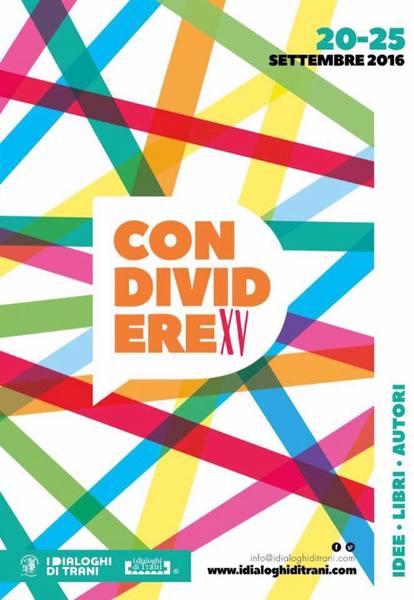 Una scelta in linea con il tema della 15ma edizione, “Condividere”, un verbo oggi fra i più utilizzati, anche e soprattutto grazie ai social network. Così i Dialoghi di Trani, a cura dell’associazione La Maria del porto, entrano sempre più nella sfera della nuova comunicazione, associando la valorizzazione di libro e lettura a quella della tecnologia in tutti i suoi nuovi formati e piattaforme, ma condividendo, appunto, appuntamenti ed esperienze anche con il territorio.